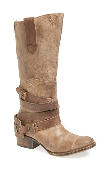 Rugged hand-distressing amplifies the authentic appeal of a Western-inspired knee-high boot wrapped with contrasting buckle straps. Color(s): grey. Brand: Freebird by Steven. Style Name: Freebird by Steven 'Dakota' Boot (Women). Style Number: 70