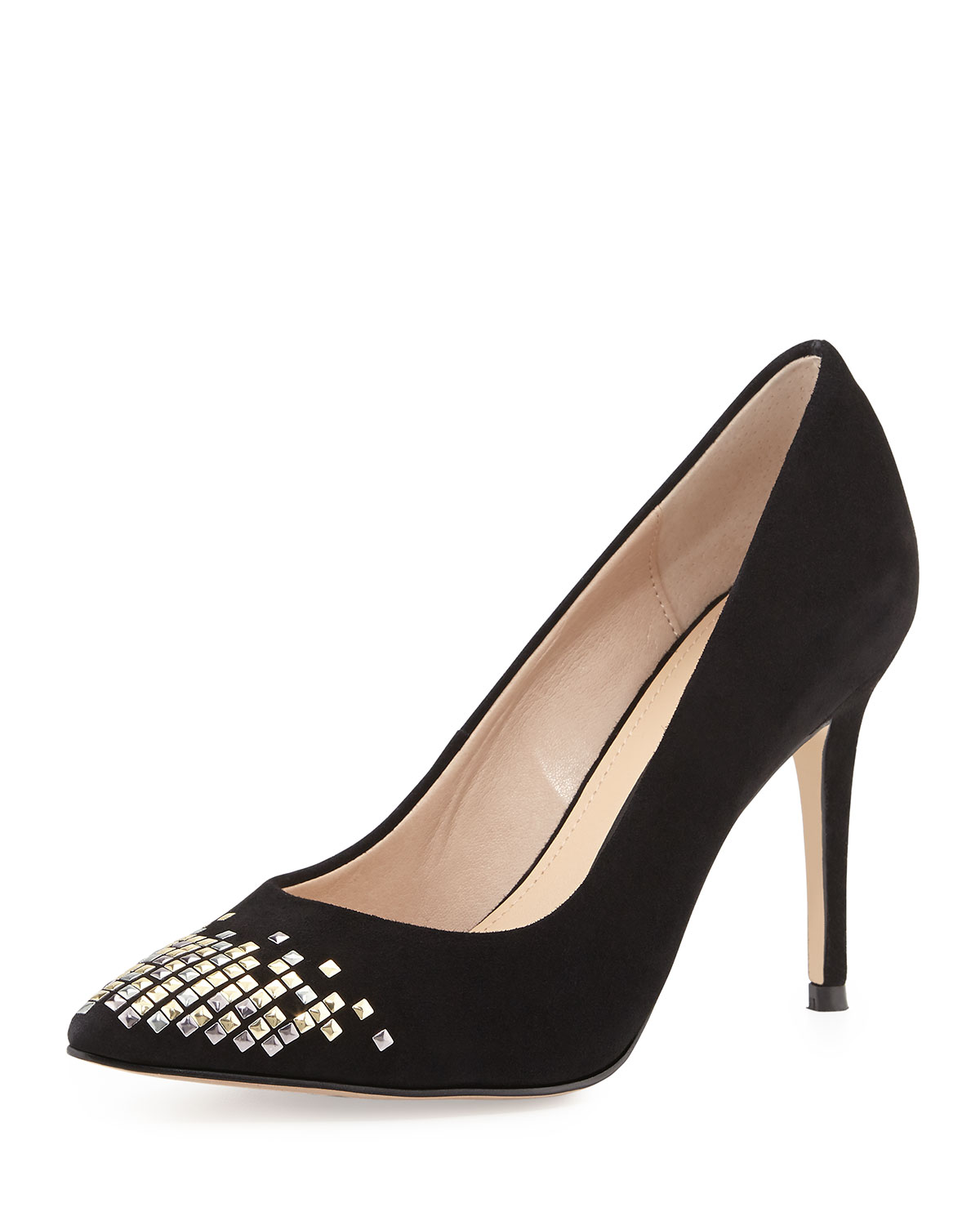 French ConnectionElka Suede Leather Pump, BlackDetailsFrench Connection suede leather upper. Pointed toe with stud accents. Cushioned insole. Synthetic sole.3.5" covered heel."Elka" is imported. French Connection Shoe Size Conversion: USA 5 = EU 35USA 5.5 = EU 35.5USA 6 = EU 36USA 6.5 = EU 37USA 7 = EU 37.5USA 7.5 = EU 38USA 8 = EU 38.5USA 8.5 = EU 39USA 9 = EU 39.5USA 9.5 = EU 40USA 10 = EU 41USA 11 = EU 42Designer About French Connection: Founded in 1972 by Stephen Marks, French Connection set out to create well-designed, fashionable clothing that appealed to a broad market. The collection is now one of the strongest brands on the British high street, and operates in more than 38 countries. Driven by innovation and change, the brand's strength lies in balancing new and exciting ideas with the basic promise of quality and affordability. Bold, witty and intelligent, French Connection has an irreverent and distinct brand personality, making it stand out among countless other collections.