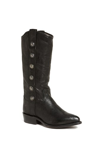 Signature Frye Melissa buttons in antiqued metal march down the side of a Western-cut boot bench-crafted in glazed, lightly textured leather with an on-trend pointed toe. Bench-crafted by hand, Frye s 150-year-old heritage of quality leatherwork is eviden
