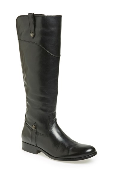Frye's 150-year-old heritage of quality leatherworking is evident in a bench-crafted knee-high boot featuring a glazed, buttery-soft upper detailed with touches of logo-etched silvertone hardware. Color(s): black, spice. Brand: FRYE. Style Name: Frye 'Melissa' Knee High Leather Tab Boot (Women). Style Number: 841070 1.