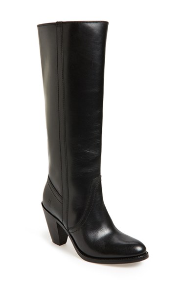 Frye's 150-year-old heritage of quality leatherwork is evident in a bench-crafted boot with a stacked heel. Premium weathered leather and a durable Goodyear welt lend a rugged, broken-in feel to the fabulous style. Color(s): black, black leather, bur