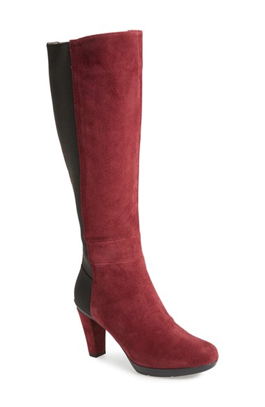 Clean, classic lines define a go-to tall boot fashioned with stretch back panels to ensure a custom fit and grounded with a signature breathable, waterproof sole. Color(s): black, bordeaux. Brand: Geox. Style Name: Geox 'Inspiration 7' Suede Tal