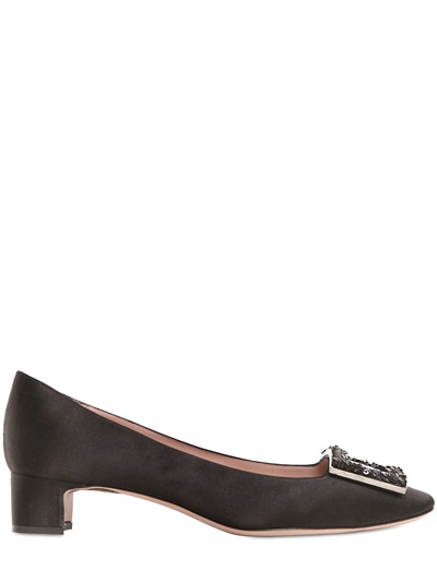 Giorgio Armani 30mm Sequined Buckle Silk Satin Pumps $695.00 Style: 246305717