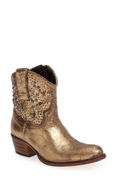 Worn, vintaged leather composes an iconic Western-inspired boot accented with a burnished metallic toe cap. Color(s): olive, olive suede. Brand: GOLDEN GOOSE. Style Name: Golden Goose 'Flying' Distressed Western Boot. Style Number: 931479.