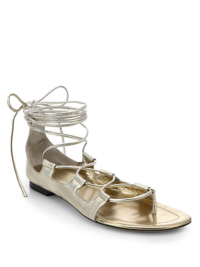EXCLUSIVELY AT SAKS IN BRONZE. Ultra-smooth metallic leather straps form a timeless gladiator design, styled with flashy goldtone metal rings and a convenient back zip.;Metallic leather upper with goldtone rings;Back zip;Leather lining and sole;Padded insole;Made in Italy