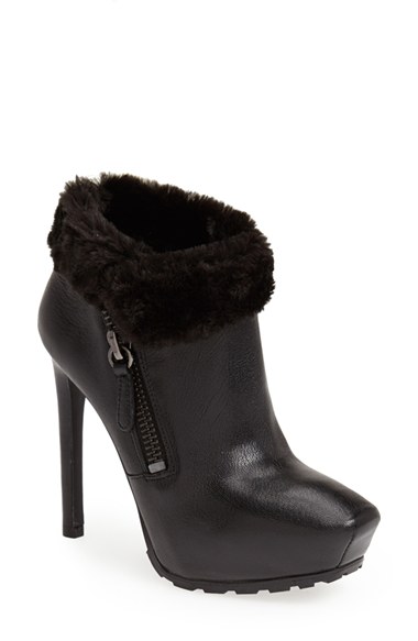GUESS 'Ivorie' Faux Fur Trim Leather Bootie (Women) Black Size $138.95 Style: 888474076161