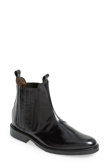 Covered elastic-gore side panels underscore the timeless style of a burnished leather Chelsea boot. Color(s): black. Brand: H by Hudson. Style Name: H by Hudson 'Tafler' Leather Chelsea Boot (Women). Style Number: 734839.