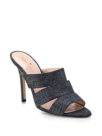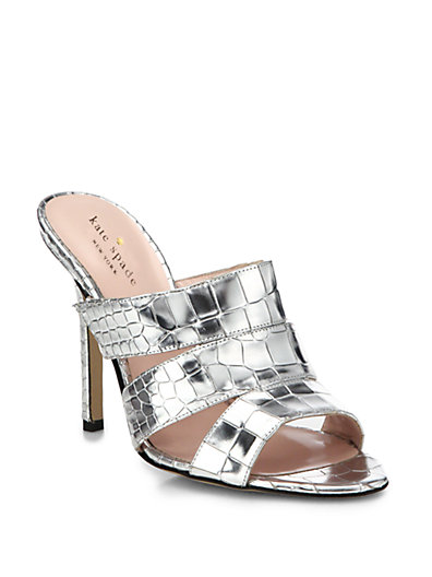 A shimmering lurex finish on these slide sandals creates a shining moment. ;Self-covered heel, 3.5" (90mm);Lurex upper;Open toe;Slip-on style;Lurex and leather lining;Leather sole;Padded insole;Made in Italy