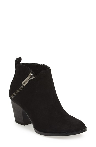 An exposed zipper lends lavish appeal to a minimalist suede bootie with a streamlined profile. Color(s): alpaca suede, black suede. Brand: Ivanka Trump. Style Name: Ivanka Trump 'Tarissa' Bootie (Women). Style Number: 846578.
