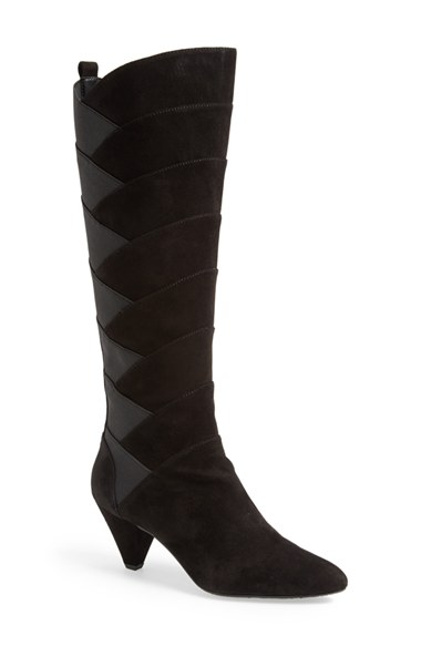 Contrast elastic gore straps are interwoven with the smooth suede of a scene-stealing knee-high boot to provide enhanced drama and a sleek custom fit. Color(s): black suede, red suede. Brand: J.Renee. Style Name: J. Renee 'Walkaline' Suede Tall