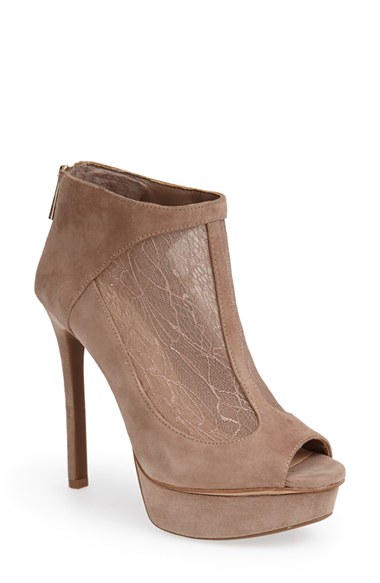 A soaring platform bootie shows more than a little skin with peekaboo mesh panels and a pedicure-ready open toe. Color(s): black, black lace, totally taupe lace. Brand: Jessica Simpson. Style Name: Jessica Simpson 'Caiazzo' Platform Bootie (Wome