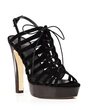 An opulent bejeweled snake slithers around the cool yet glamorous silhouette of these towering platform sandals, creating an entrance-making look.;Self-covered block heel, 5" (125mm);Platform, 1.5" (40mm);Compares to a 3.5" heel (85mm);Leather upper;Adjustable ankle strap;Leather lining and sole;Padded insole;Made in Italy