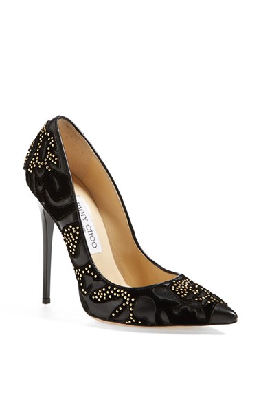 Jimmy Choo's iconic Anouk pump steps out in a studded-suede overlay to dramatic effect for your most illustrious evenings. Color(s): black. Brand: Jimmy Choo. Style Name: Jimmy Choo 'Anouk' Pump. Style Number: 138328.