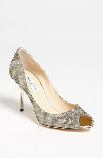 Glints of sparkle spring from a dazzling peep-toe pump perched on a slender mirrored heel. Color(s): light bronze. Brand: Jimmy Choo. Style Name: Jimmy Choo 'Evelyn' Pump. Style Number: 668731.
