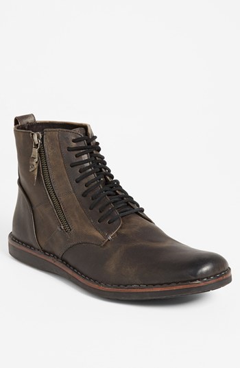 Weathered goatskin shapes a smart boot with uniquely designed lacing and a convenient side zipper for easy entry. Color(s): lead. Brand: John Varvatos Star USA. Style Name: John Varvatos Star USA 'Barrett' Plain Toe Boot. Style Number: 553575.