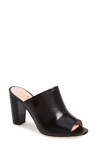 A chunky, faceted heel catches the light on a sleek peep-toe mule sandal in supple leather. Color(s): black, doe. Brand: kate spade new york. Style Name: kate spade new york 'baylee' sandal (Women). Style Number: 835451.
