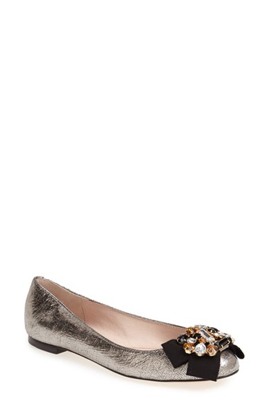 A fluffy pompom accented with a girly grosgrain bow tops the toe of a velvety skimmer flat shaped with an elasticized topline for a comfy, stay-put fit. Color(s): dusty pink. Brand: kate spade new york. Style Name: kate spade new york 'camden' skimmer flat (Women). Style Number: 457138 1.
