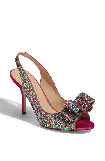 Lustrous satin is shaped into a chic slingback with a charming bow just above the peep toe. Color(s): black satin, black/ white, fuchsia satin, ivory satin, natural/ silver, navy/ white. Brand: kate spade new york. Style Name: kate spade new york 'celeste' pump. Style Number: 374930.
