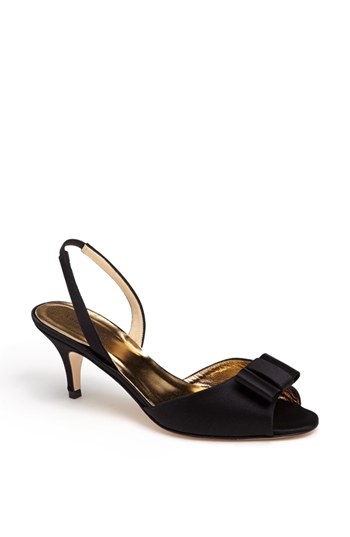 Lustrous satin and a signature bow accent further the graceful charm of a peep-toe slingback sandal. Color(s): black satin, cobalt satin, ivory satin, silver nappa. Brand: kate spade new york. Style Name: kate spade new york 'emelia' sandal. Style Number: 917487.