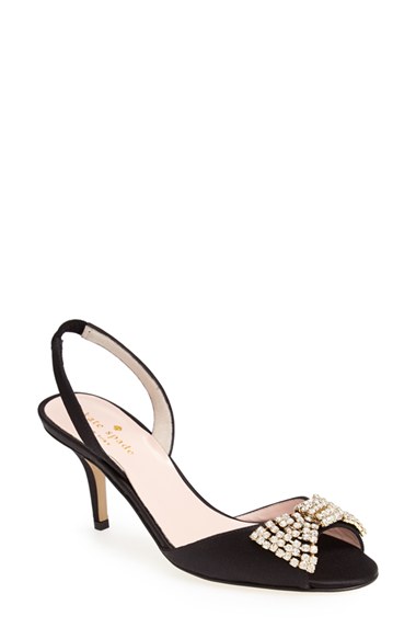 A crystal-encrusted bow dazzles at the peep toe of an elegant satin slingback sandal. Color(s): black satin, cobalt satin, dusty pink satin, red satin. Brand: kate spade new york. Style Name: kate spade new york 'miva' sandal (Women). Style Number: 829718.
