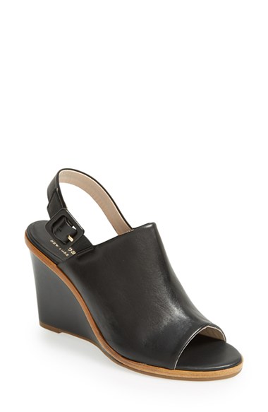 Smooth, polished leather is shaped into the wide-banded vamp of a slingback sandal set on a sleek wrapped wedge. Color(s): black, natural. Brand: kate spade new york. Style Name: kate spade new york 'nilena' wedge sandal (Women). Style Number: 840366.