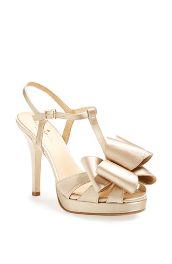 Lustrous satin shapes an elegant platform sandal topped with a lush, oversized ribbon bow for a fun and flirty finish. Color(s): champagne satin, cobalt satin, grey stain, ivory satin. Brand: kate spade new york. Style Name: kate spade new york 'ribbon' sandal. Style Number: 684147.