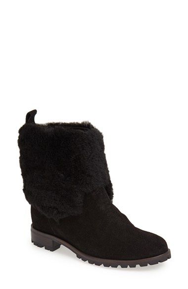 Genuine shearling adds a cozy look and feel for this versatile, statement-making boot cast in sumptuous suede. Color(s): black. Brand: kate spade new york. Style Name: kate spade new york 'sari' genuine shearling & suede boot (Women). Style Number: 816497 1.