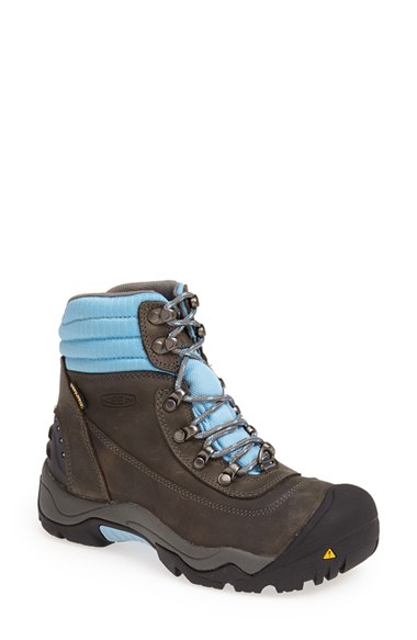 A multi-direction lug sole ensures reliable traction in a waterproof snow boot augmented with 200g KEEN. Warm insulation-three heat-trapping layers that help to capture warm air. Color(s): gargoyle/ blue. Brand: Keen. Style Name: Keen 'Revel II' Waterproof Snow Boot (Women). Style Number: 715482.