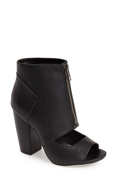 A chunky, stacked heel, sharp cutouts and tough zip hardware put this architectural, supple leather bootie squarely in trendsetting territory. Color(s): black, grey. Brand: KELSI DAGGER BROOKLYN. Style Name: Kelsi Dagger Brooklyn 'Billie' Leather Open Toe Bootie (Women). Style Number: 850967.