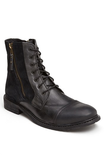 Supple leather shapes a lace-up boot designed with modern zippers and a smart toe cap. Color(s): black leather woven. Brand: Kenneth Cole Reaction. Style Name: Kenneth Cole Reaction 'Hit Men' Cap Toe Boot. Style Number: 915800.