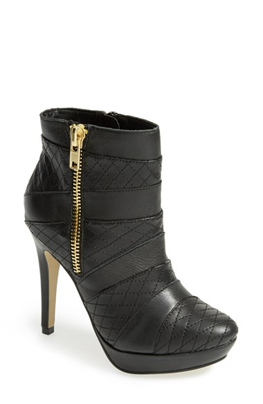 Pieced construction and diamond stitching provide striking texture to a platform ankle boot crafted with an exposed side zip. Color(s): black. Brand: kensie. Style Name: kensie 'Noreen' Leather Boot (Women). Style Number: 805342.