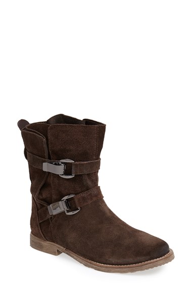 Smooth suede shapes a trend-right bootie styled with wraparound straps for a slouchy look. Color(s): black, brown, dark stone. Brand: Klub Nico. Style Name: Klub Nico 'Letty' Suede Boot (Women). Style Number: 45808.