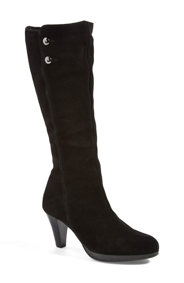 Decorative buttons adorn the top of a classically styled boot updated with waterproof construction and a moisture-wicking lining to keep feet dry. Color(s): black suede, charcoal. Brand: La Canadienne. Style Name: La Canadienne 'Mazy' Waterproof