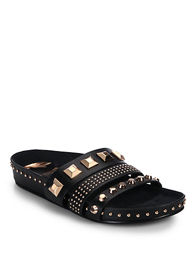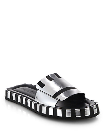 A classic slide in glossy patent leather, crafted with signature whipstitch trim. ;Leather upper;Leather lining and sole;Imported
