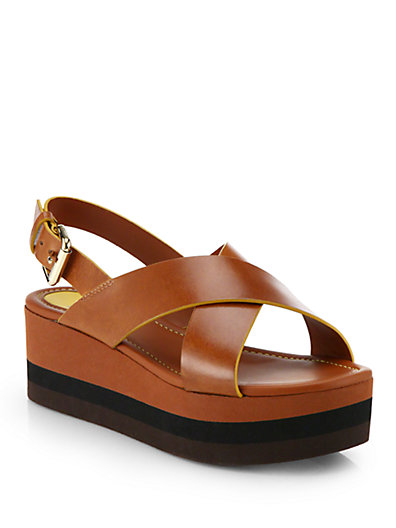 A moderate flatform heel, with Mondrian-esque colorblocked design, lifts sandals cast in a combination of supple leather, textural woven fabric and sleek satin.;Foam wedge, 2.75" (70mm);Foam platform, 1.25" (30mm);Compares to a 1.5" heel (40mm);Fabric, satin and leather upper;Adjustable ankle strap;Leather lining;Padded insole;Foam sole;Made in Italy