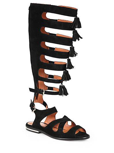 Supple Italian leather shapes this woven gladiator design, finished with buckle-strap closures. ;Shaft, 14";Leg circumference, 12";Leather upper;Buckle closures;Leather lining and sole;Made in Italy