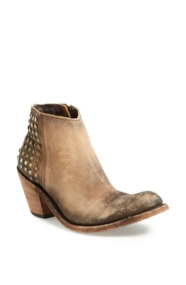 Regimented antiqued-finish metal studs punch up a Western-inspired leather boot styled with a distressed finish for a vintage, worn-in look. Color(s): distressed black, distressed tan. Brand: LIBERTY BLACK. Style Name: Liberty Black Studded Short Boot. St