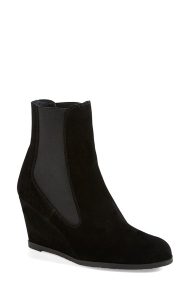 Sleek elastic goring perfects the fit of a stylish suede bootie boosted by a slim wedge heel. Color(s): black suede. Brand: LK BENNETT. Style Name: L.K. Bennett 'Paris' Bootie (Women). Style Number: 798756.