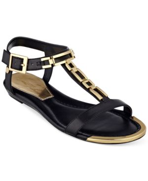 Add glamour to your steps with the Maribell t-strap sandals by Marc Fisher. They feature gold-tone details with a buckle closure at the ankle.