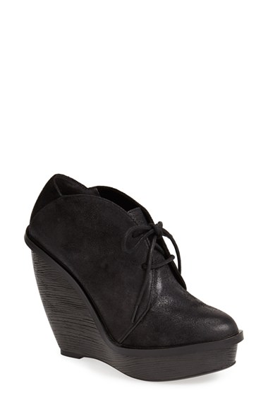 A woodgrain textured wedge boosts the versatile appeal of an distressed leather desert bootie taken to flattering, leg-lengthening heights. Color(s): black. Brand: MAXSTUDIO. Style Name: MAXSTUDIO 'Arc' Platform Wedge Bootie (Women). Style Number: 464298.