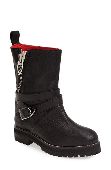 Richly textured lambskin adds a touch of unmistakable refinement to a fierce moto boot grounded with a heavily lugged sole. Color(s): black. Brand: MCM HANDBAGS. Style Name: MCM Leather Moto Boot (Women). Style Number: 799358.