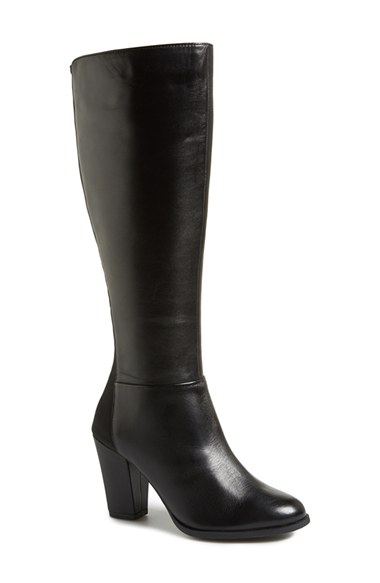A sleek stretch panel ensures a custom fit on an essential leather boot that features an ultra-cushioned insole for all-day comfort. Color(s): black. Brand: Me Too. Style Name: Me Too 'Harland' Leather Boot (Women). Style Number: 822615.