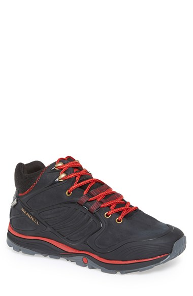 Merrell 'Verterra Mid' Waterproof Hiking Boot (Men) Black/ Red $150.00 Style: 040707767608