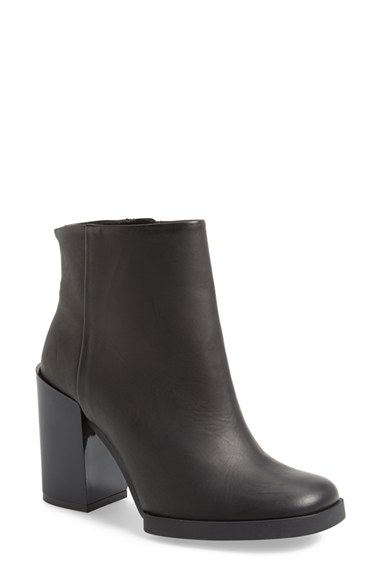 A trend-right block heel puts a contemporary spin on a supersoft leather bootie cast in a slim silhouette. Color(s): black. Brand: Miista. Style Name: Miista 'Skye' Leather Bootie (Women). Style Number: 803943.