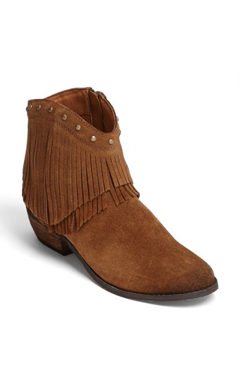 Tiers of swingy fringe and antiqued studs trim a Western-style boot for classic cowgirl appeal. Color(s): black, dusty brown. Brand: Minnetonka. Style Name: Minnetonka 'Bandera' Boot. Style Number: 690348.