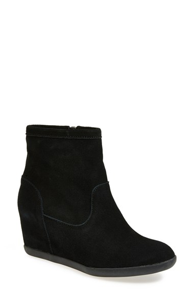 A sleek hidden wedge elevates a clean-cut ankle boot cast in smooth suede. Color(s): black, dusty brown, taupe. Brand: Minnetonka. Style Name: Minnetonka Hidden Wedge Boot (Women). Style Number: 432378.