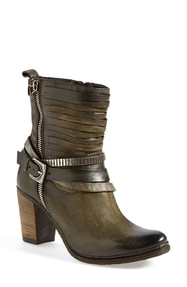 A Western-inspired boot features a strap-wrapped shaft for a modern look. The blocky stacked heel is having a fashion moment and delivers cool textural dimension that s right on trend. Color(s): black, olive. Brand: MJUS. Style Name: MJUS 'Ulrich