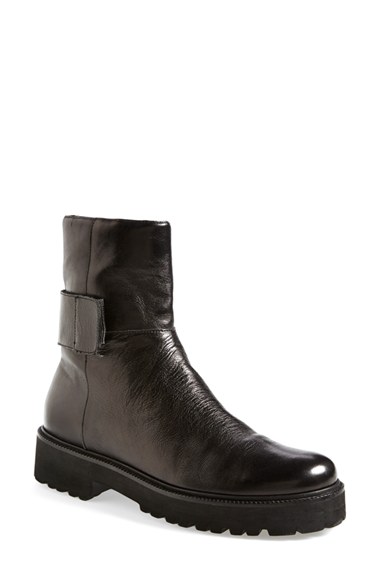 A lightweight, lugged microsole amps up the urban appeal of a minimalist moto-inspired boot shaped from brushed water buffalo leather. Color(s): black. Brand: MM6 MAISON MARTIN MARGIELA. Style Name: MM6 Maison Martin Margiela Leather Boot. Style Number: 4