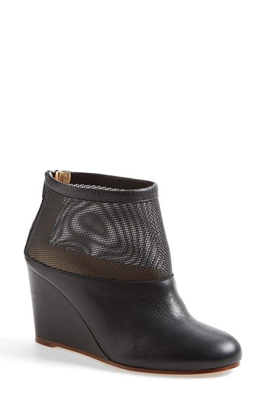 A mid-heel wedge bootie is designed in leather and mesh for a lightened-up look and textural contrast that's very MM6. Color(s): black. Brand: MM6 MAISON MARTIN MARGIELA. Style Name: MM6 Maison Martin Margiela Mesh & Leather Wedge Bootie (Women). Style Number: 867360.