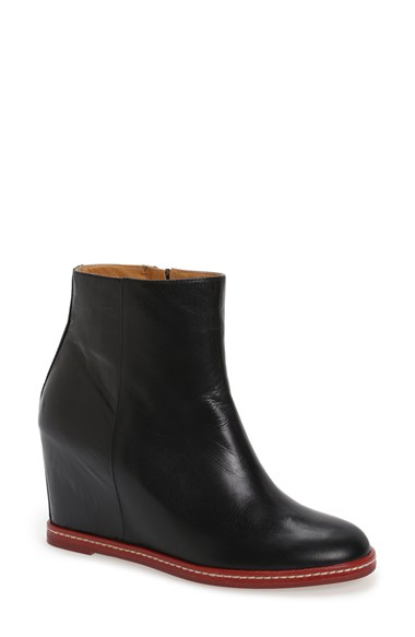 Lush black leather with obsidian luster composes an Italian-crafted wedge bootie finished with a contrast wedge. Color(s): black leather. Brand: MM6 MAISON MARTIN MARGIELA. Style Name: MM6 Maison Martin Margiela Wedge Bootie. Style Number: 82171.